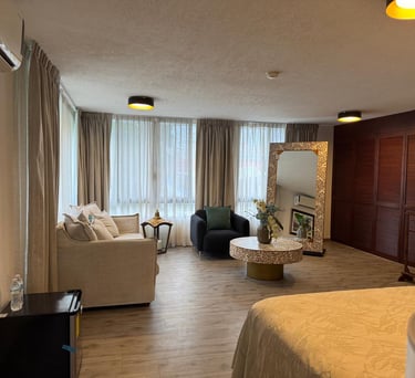 Disfruta de una estancia única en nuestra Suite Ceibas, donde la elegancia se encuentra con la naturaleza, rodeado de los majestuosos árboles ceibas en un ambiente de tranquilidad.